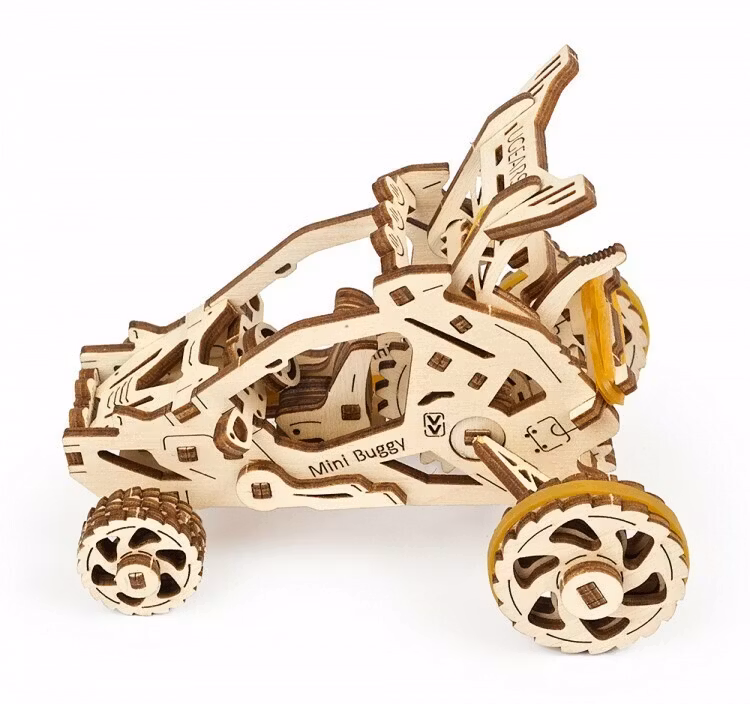 - UGEARS Desert Buggy är en mekanisk trämodell med öppen karossdesign som låter dig se kugghjulen i arbete.