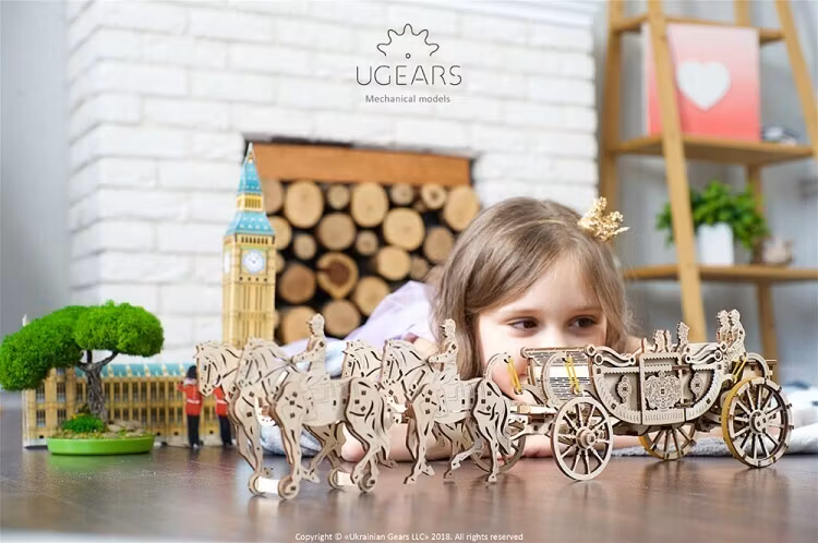 - UGEARS Royal Carriage Limited Edition är en intrikat mekanisk trämodell inspirerad av den berömda Landau 1902, använd vid det kungliga bröllopet av prins Harry och Meghan Markle 2018.